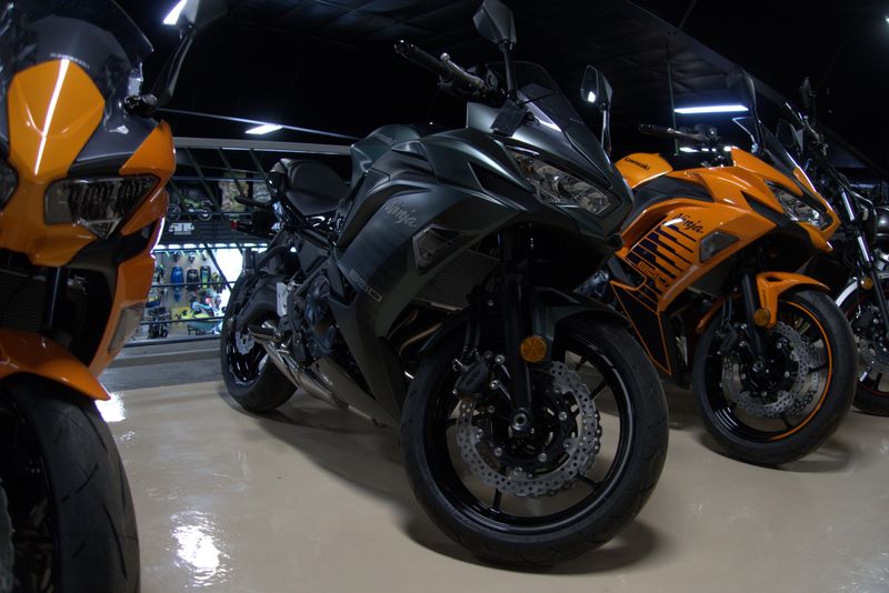 Built to embody Ninja® sportbike lineage, the Ninja® 650 motorcycle comes packed with a sporty 649cc engine, next-level technology, and sharp styling. Unmistakable sport performance is met with an upright riding position for exciting daily commutes, while a supreme level of attitude reminds you of its legendary heritage.