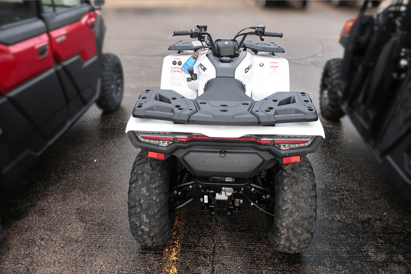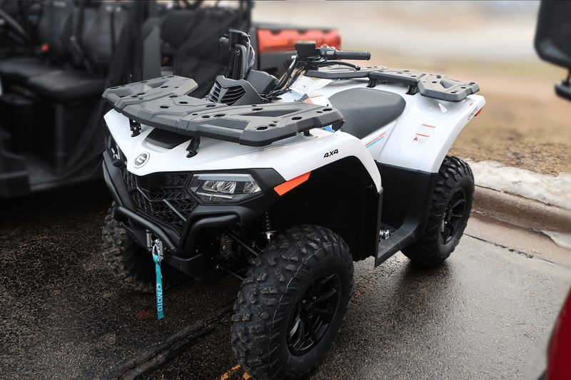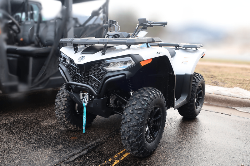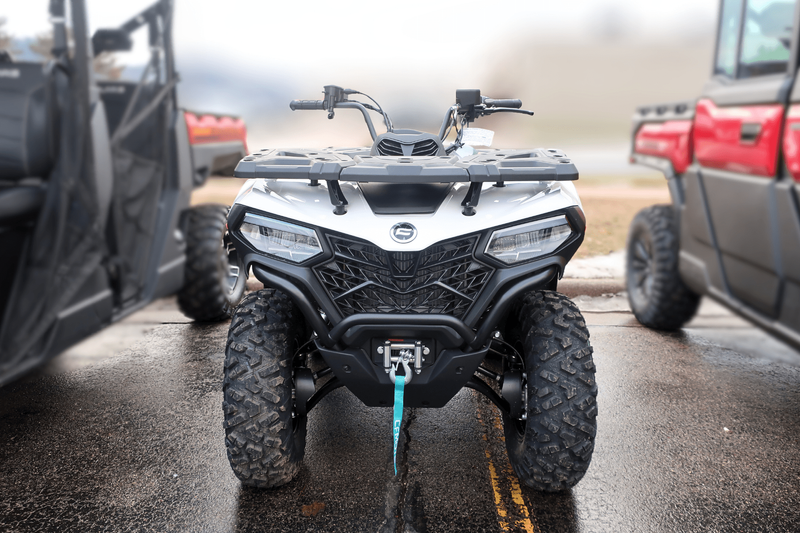 Now, check out these numbers: 34 horsepower. 29 lb-ft of torque. 10.3 inches of ground clearance. 1,350 pounds of towing capacity. 2,500-pound winch. 4WD with diff lock. All of it standard. This isn’t just a mid-size ATV—it’s the golden ratio of power, price, and pure usability. The CFORCE 500 delivers confident, smooth performance with a liquid-cooled 500cc engine and ride-by-wire throttle. Class-leading vibration reduction keeps it comfortable all day, and the EPS makes it nimble in tight woods and steady at speed. Whether you're hauling firewood, exploring backcountry, or plowing a fresh dump of snow—this machine just shows up and gets it done.