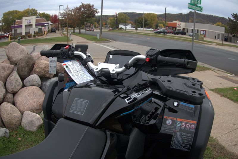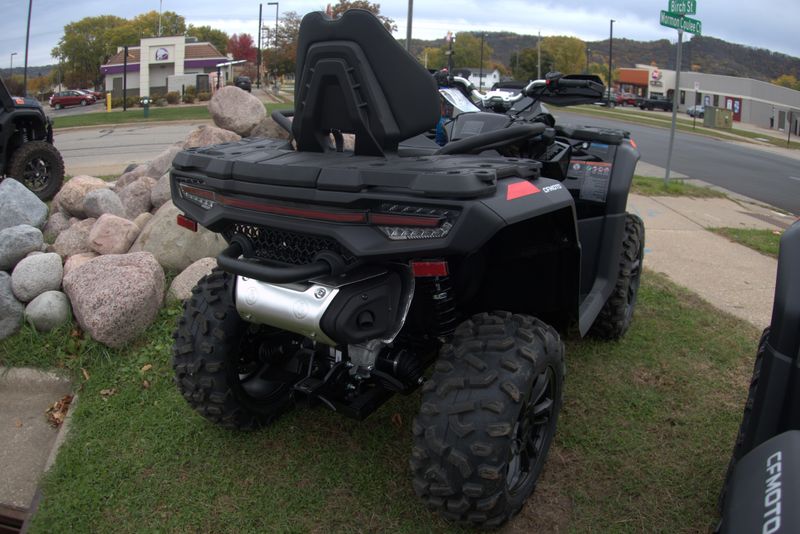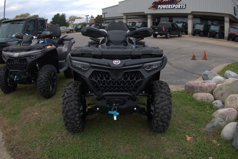 • ADDITIONAL FEATURES: Passenger seat, brushless electronic power steering, Bosch® EFI with work/normal/sport modes, 3500 lb. winch with synthetic rope, CFMOTO LED™ headlights & taillights with daytime running lights, steel racks with composite cover, 7" TFT display, Bluetooth call indicator, 2” receiver, hand guards, heavy-duty steel bumpers, fender flares, 12V outlet, USB port, Downhill Assist Control