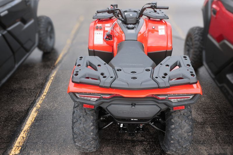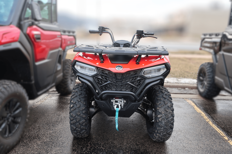 Now, check out these numbers: 34 horsepower. 29 lb-ft of torque. 10.3 inches of ground clearance. 1,350 pounds of towing capacity. 2,500-pound winch. 4WD with diff lock. All of it standard. This isn’t just a mid-size ATV—it’s the golden ratio of power, price, and pure usability. The CFORCE 500 delivers confident, smooth performance with a liquid-cooled 500cc engine and ride-by-wire throttle. Class-leading vibration reduction keeps it comfortable all day, and the EPS makes it nimble in tight woods and steady at speed. Whether you're hauling firewood, exploring backcountry, or plowing a fresh dump of snow—this machine just shows up and gets it done.