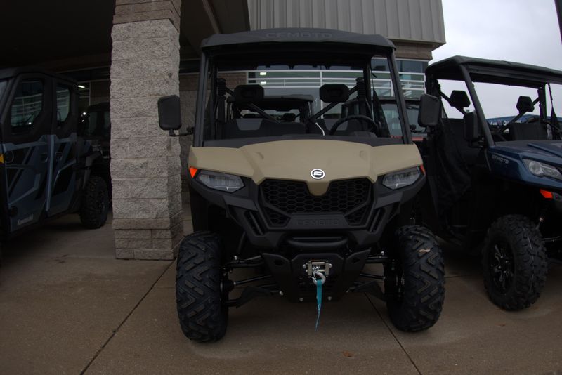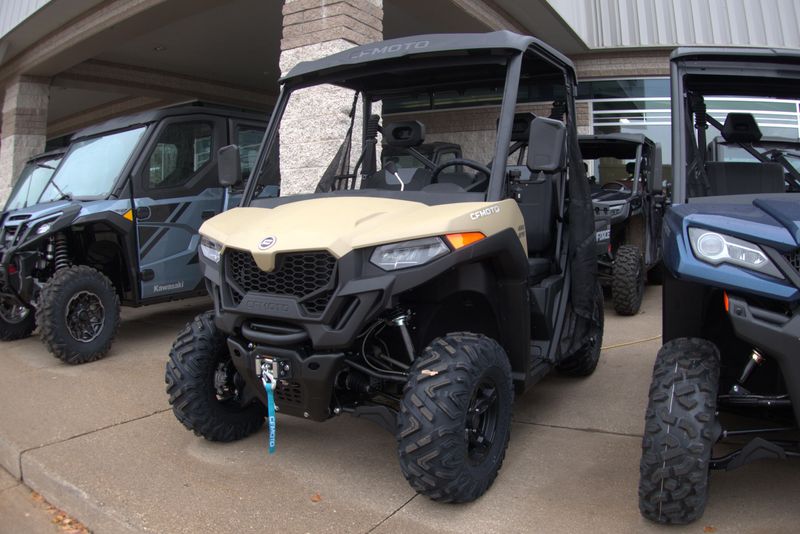 • ADDITIONAL FEATURES: Electronic power steering, Bosch® electronic throttle with work/normal modes, 3500 lb. winch, 2-person bench seat, LCD display, CFMOTO RideSync app compatible (T-Box), 12V outlet, USB port, side mirrors, side nets, Ridevision™ LED headlights/taillights with backup lights, tilt steering, roof, skid plate, rear sway bar, locking rear differential, large 9.25 gal. fuel tank, 2” receiver, adjustable driver’s seat, under-seat storage area, front bumper