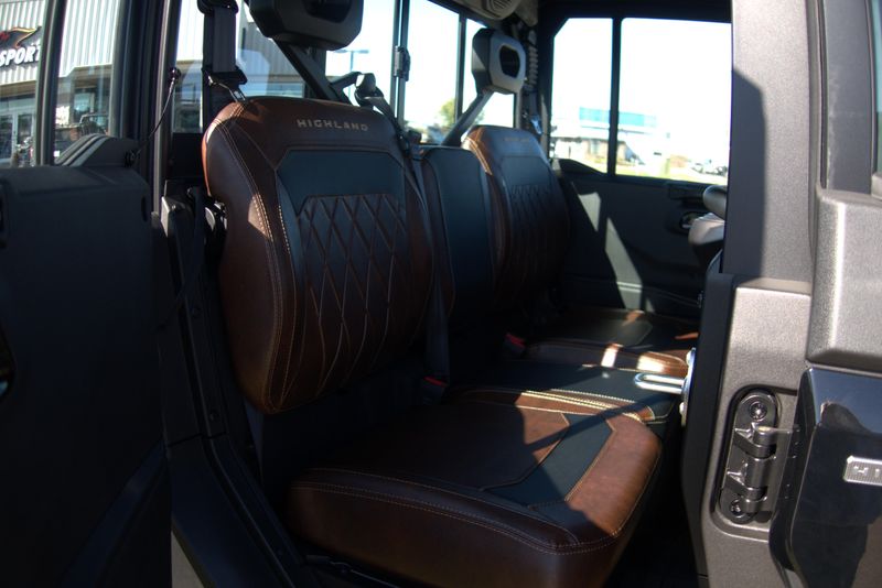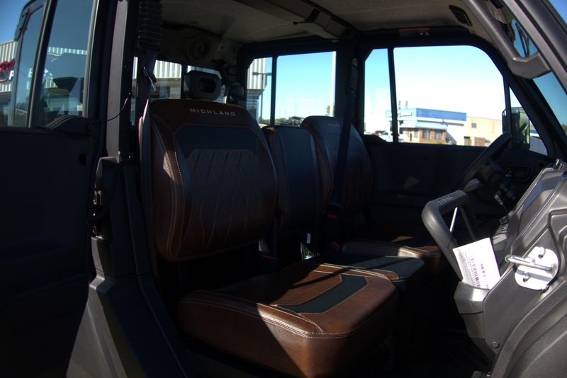 • High-End Interior: The Highland’s interior delivers the sophistication of a luxury SUV, paired with the durability expected in a rugged UTV. The premium interior provides seating for six passengers. High-quality materials and precision stitching endure the harshest conditions. A sound-dampening headliner minimizes cabin noise, ensuring a quieter, more comfortable ride.