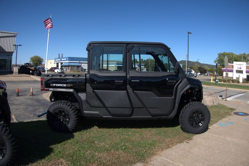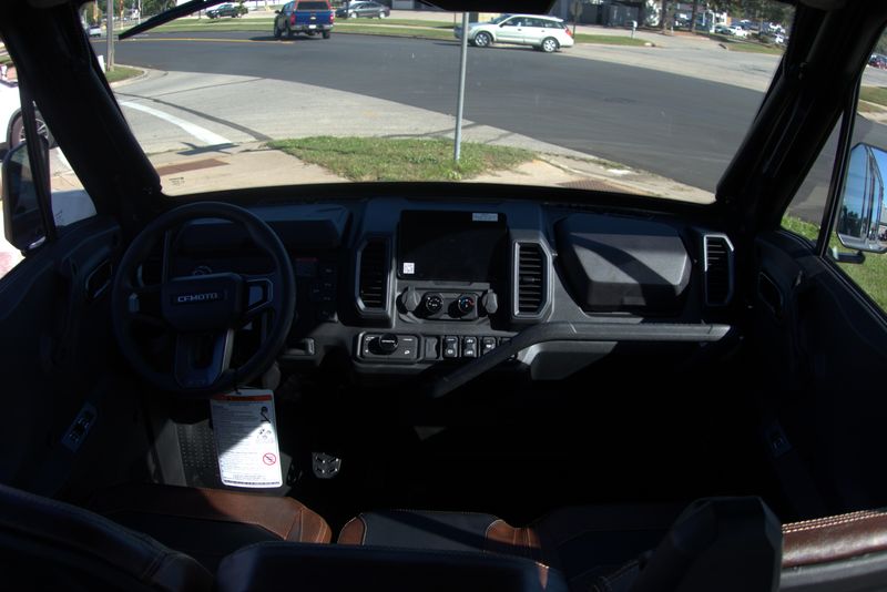 • ADDITIONAL FEATURES: Electronic power steering, Bosch® EFI, electronic throttle with work/normal modes, OmniDrive™ CVT, 4500 lb. winch with synthetic rope, two 3-person bench seats, CFMOTO LED™ headlights/taillights with backup lights, tilt steering wheel, CFMOTO RideSync app compatible (T-Box), 12V outlet, USB port, push button shifting and starting, nfc key, 8” CFMOTO RideSync™ touchscreen display, electronic / hydraulic tilt bed, skid plate, front & rear sway bars, Hill Descent Control, locking front and rear differential, side rear view mirrors, roof with headliner, bus bar, 2” receiver, adjustable driver seat, audio package, power glass tip out windshield with wiper, sliding rear glass window, full locking doors with power glass windows, factory installed HVAC, 150amp charging system