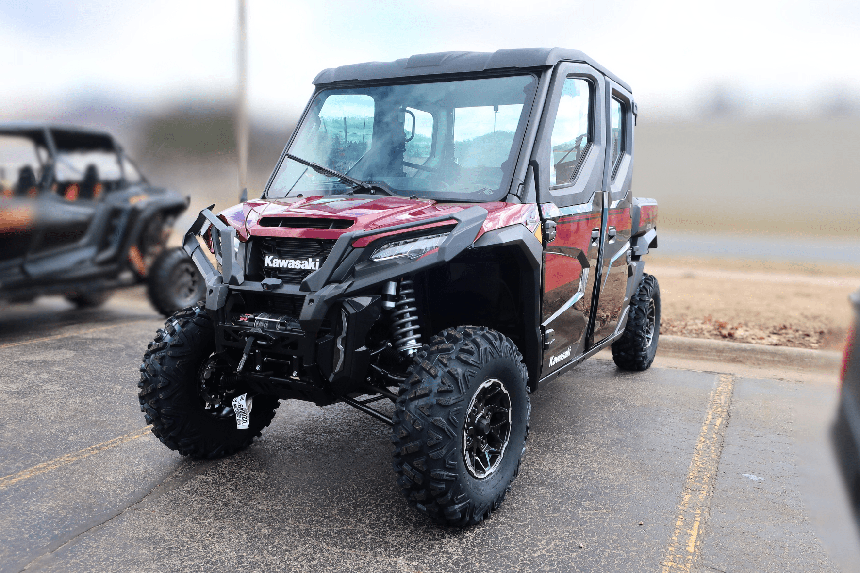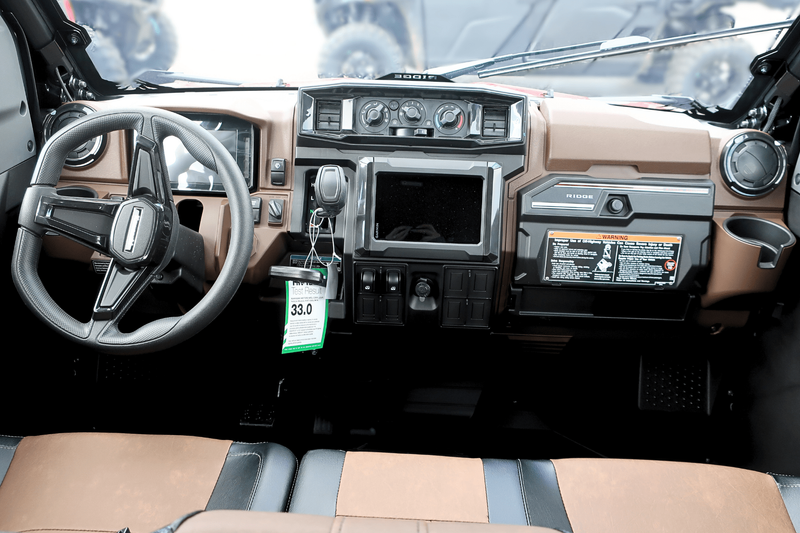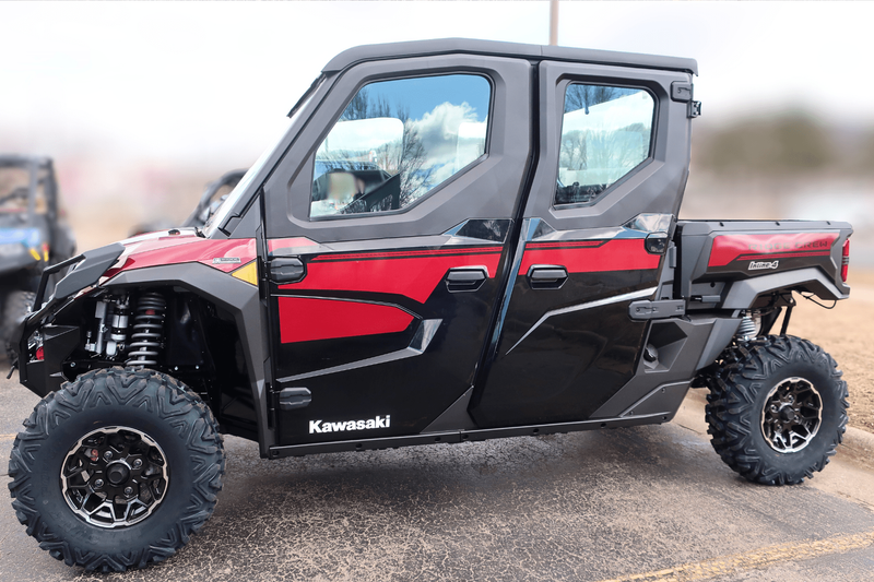 • Additional Features: 8-in Garmin Tread®, (4) 6.5-in speakers, Front/rear cameras, WARN® VRX 45-S Powersport Winch, Full Cab with HVAC, Adjustable driver's seat, Front stabilizer bar, ERGO-FIT®, Full-color TFT Instrumentation with Smartphone Connectivity via RIDEOLOGY THE APP Powersports, USB ports, KQR™ system compatible