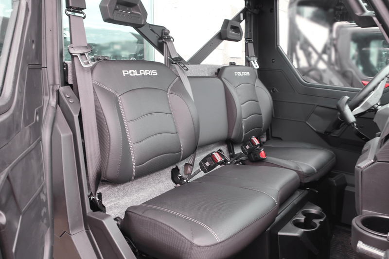 • Seat Type: 3-person bolstered bench seats with 3-point harness and adjustable driver seat