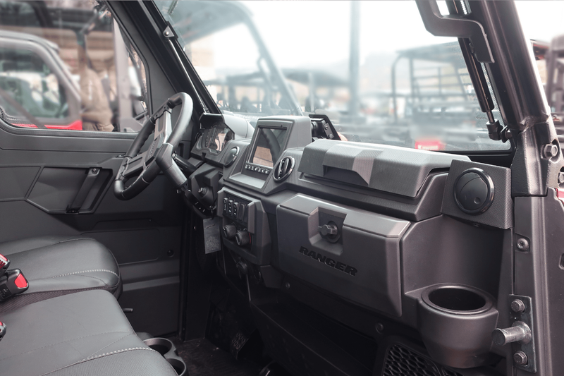 • COMFORT: • Protection From The Elements: The factory-installed cab system - including a tip-out windshield and powered front windows - keep you comfortably riding in rainy, snowy or dusty conditions. • Control Your Climate: Factory-installed heating and air conditioning lets you control the climate for all-season comfort. For quick relief on hot days, a variable AC compressor automatically varies its pumping capacity to deliver faster cooling and lower temperatures, even when at idle and low engine RPMs. • Ride Command: Unlock integrated RIDE COMMAND technology in your vehicle’s display, with the most sophisticated off-road GPS navigation system and feature set. Communicate, tune into your machine and stay prepared for whatever the day brings. Plus, use the factory-installed rear camera to confidently reverse. Available on NorthStar Ultimate. • Immersive Sound: Standard with the Ultimate trim, integrated JBL® audio speakers deliver precise audio clarity and premium sound. Run AM/FM radio or connect to Bluetooth via the RIDE COMMAND infotainment system.