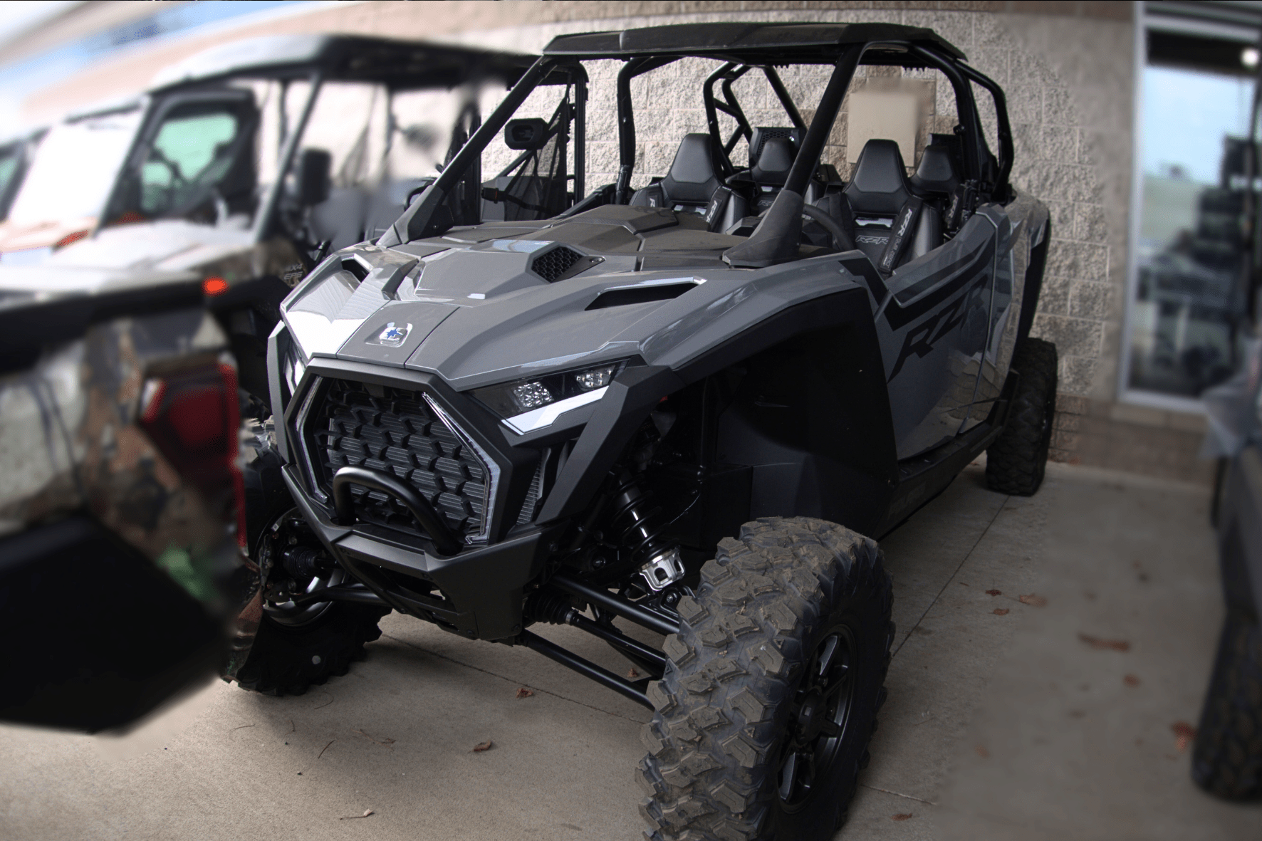 • Lighting: Signature animated RZR Fang Accent Lighting; white LED low/high and red LED tail/brake lights; animated interior accent lighting