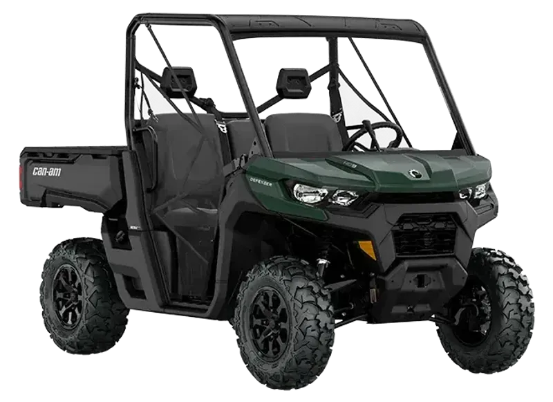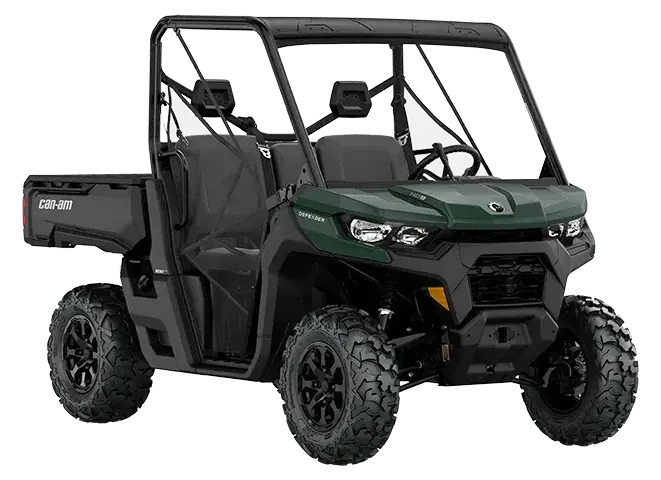 • AUDIO ROOF: More than just a roof over your head Here's the new waterproof sound system available in option. Six 7.7’’ speakers with Bluetooth compatibility, multi-colored LEDs, an RMC amp and a genuine Rockford Fosgate audio receiver to crank up your playlists when you’re out there in the fields herding or baling to the beat of your own drum. Sounds good? You bet! Can-Am Defender cockpit photo featuring the HVAC system and its controls HVAC No sweat: Available climate control Features an automatic & a variable compressor mode that improves efficiency. Dial in heating, ventilation or air conditioning to keep the cabin temperature exactly how you like and lock in that temperature with the painted full doors. See Packages with This Feature Can-Am Traxter pro removable side panels EQUIPPED FOR ANYTHING Integrated pass-through storage Exclusive full-width under bed storage for cargo, gear, tools, and more. That's in addition to removable side panels, a dump mechanism, and 100% more loading space than the Defender. Enjoy gimmick-free practicality that's ready to haul with strength and space to spare. See Packages with This Feature An Oxford Blue Can-Am Defender 6x6 Limited in action, hauling a trailer UP TO A 3,000 LBS TOWING CAPACITY Industry-leading towing capacity With engines, chassis, driving assistance, work mode and suspension all matched to work harder than any other side-by-side, the Defender can tow up to 2,500 lbs (1134 kg), while Defender 6x6 boasts an industry-leading 3,000 lbs (1360 kg) towing capacity. See Packages with This Feature Can-Am Pro-torq cvt transmission and 4wd selectable mode TORQUE ON DEMAND PRO-TORQ CVT transmission and on-the-fly 4WD Selectable Turf Mode / 2WD / 4WD with Visco-Lok† QE auto-locking front differential puts the power down on any terrain. The PRO-TORQ CVT on HD9 and HD10 models provides improved cooling and electronic belt protection for more durability.
